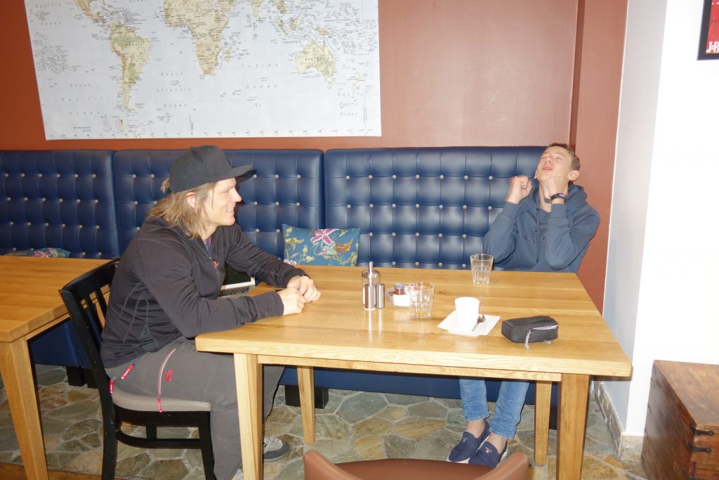Tidig morgon och frukost med Tobias Granath. Nu får Henrik information hur livet kan se ut för en bergsguide. Han lyssnar och för anteckningar vilket ingår i uppgiften som Prao. Tobias berättar också mycket om livet utanför berget som ingen tänker på.